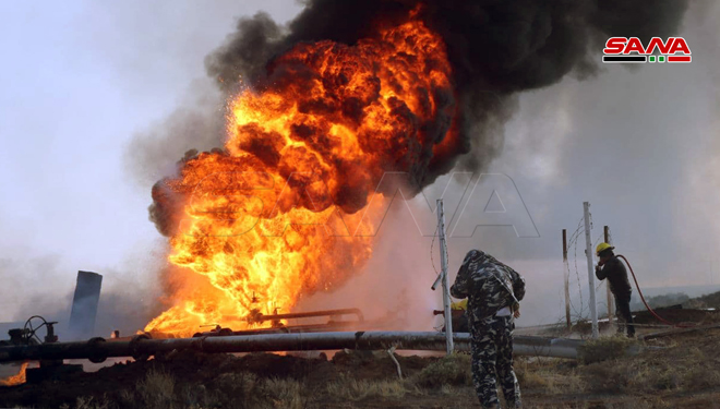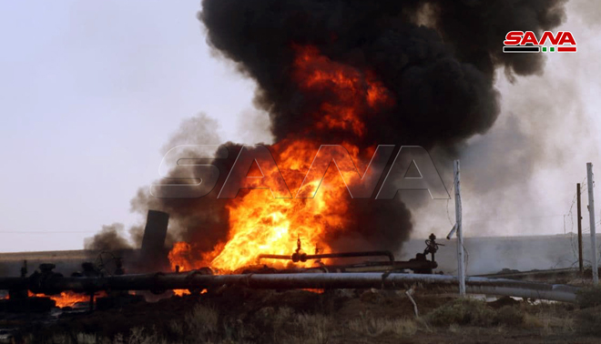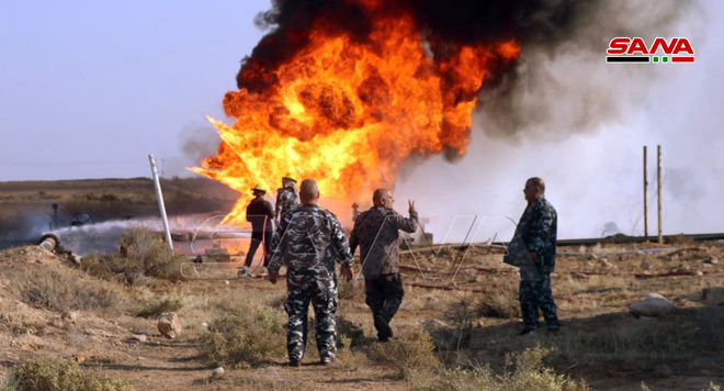 El Ing. Hamed Khalaf, presidente de la Sección del campo Deiro en la Compañía Siria de Petróleo dijo al corresponsal de SANA que “mientras los equipos de mantenimiento trabajaban por reparar un punto de convergencia de oleoductos entre los campos de Al Khrata y Altem –al lado de la carretera Deir Ezzor- Mayadin- se desató un incendio e inmediatamente los equipos de bomberos se dirigieron al lugar para apagar el fuego después de aislar el oleoducto afectado.”