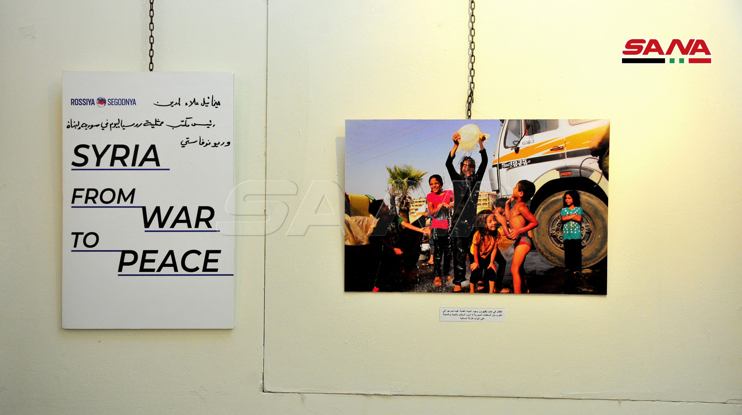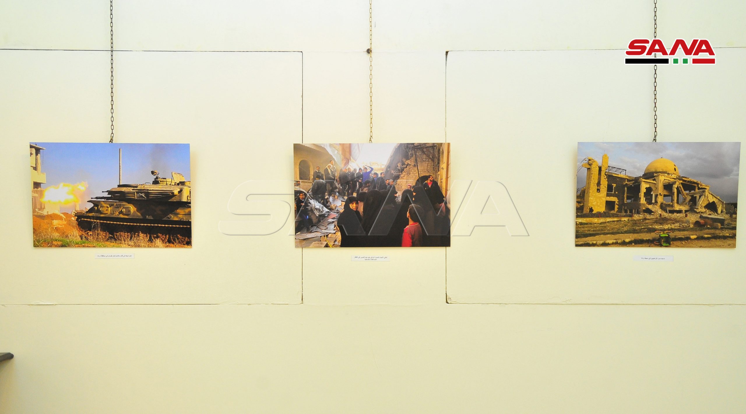 La exposición fue organizada por el Centro Cultural Ruso en Damasco, e incluye fotografías que reflejan varios temas como las victorias del ejército árabe sirio contra las organizaciones terroristas, y documentan la destrucción y devastación provocadas por el terrorismo en algunos monumentos antiguos, mezquitas e iglesias.