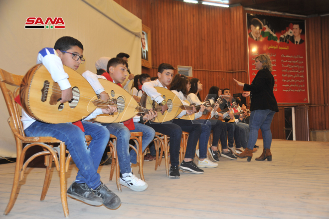 Los niños participantes no pudieron ocultar su alegría por cantar juntos ya que quieren que todo el mundo sepa que los niños sirios siembran felicidad y sonrisa dondequiera que vayan y que construirán su país con sus brazos y mentes .