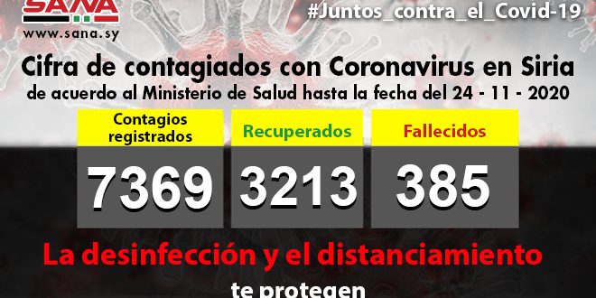 El Ministerio de Salud de Siria confirmó 74 nuevos casos de Covid-19 para un acumulado de siete mil 369.