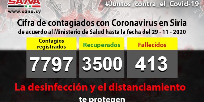Las autoridades de salud sirias confirmaron 82 nuevos casos de la Covid-19 en las últimas 24 horas, para acumular siete mil 797 infectados desde el 22 de marzo pasado, fecha de la confirmación del primer caso en el país.