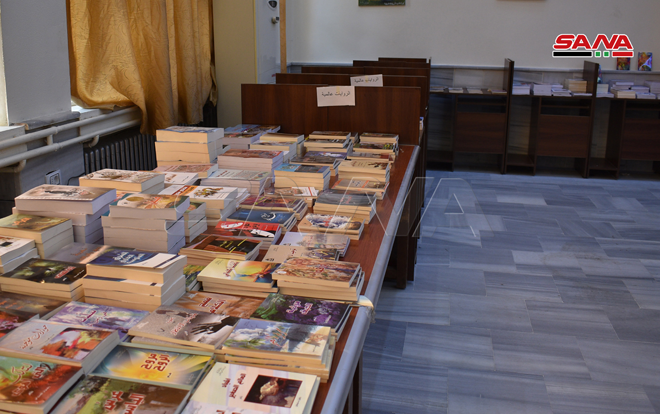 La Universidad de Alepo organizó una feria del libro que abarcó una colección de libros sobre literatura, cultura, economía y política.