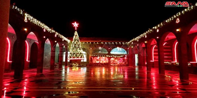 Con motivo de las próximas fiestas de Navidad y Año Nuevo, se iluminó un árbol de Navidad en la Iglesia Greco-melquita de Santa Rita, en la localidad de Khabab, en la provincia sureña de Deraa.