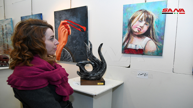 El evento tuvo lugar en el centro cultural de Abu Rumaneh en Damasco donde se exhibieron 50 obras artísticas, entre pinturas, esculturas y manualidades, creadas por discapacitados y otros artistas.