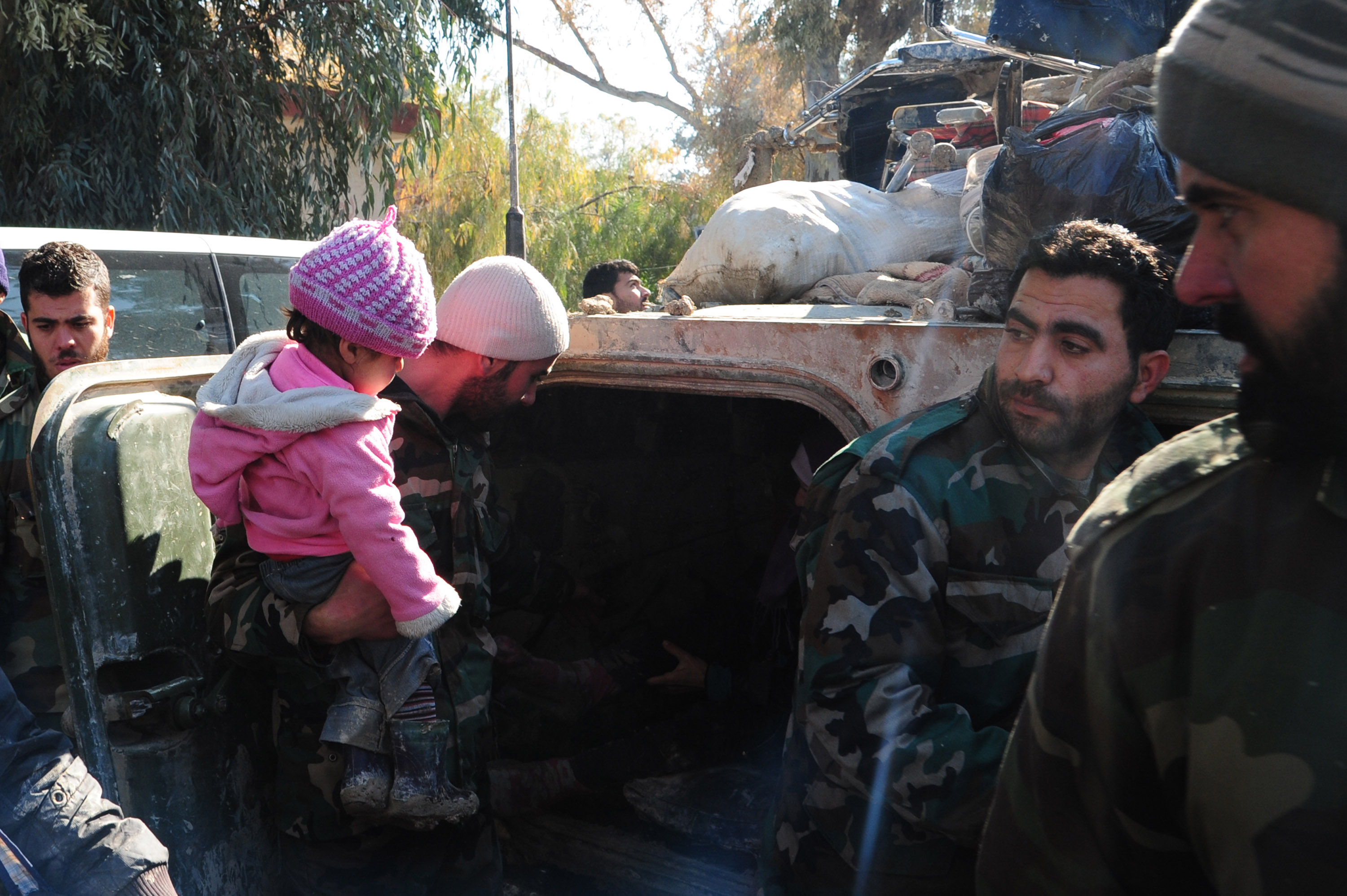 Una fuente militar informó que el ejército aseguró esta mañana la salida de 2112 personas de Ghouta del Este, entre ellas 1094 niños, 639 mujeres y más de 350 armados que se entregaron a las autoridades competentes para normalizar su estatus jurídico.