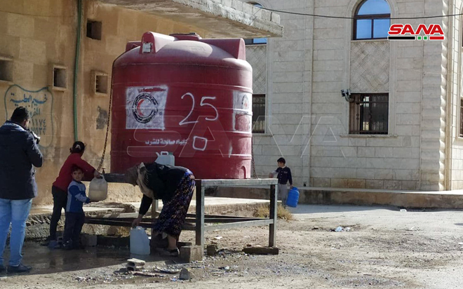 El Director de la Empresa de Agua de Hasakeh, Mahmoud al-Okleh, dijo que su institución está cooperando con la Media Luna Roja Árabe Siria para proporcionar agua potable a través de camiones cisterna con el objetivo de satisfacer las necesidades de los ciudadanos mediante la distribución del agua en diferentes áreas de la ciudad de Hasakeh.