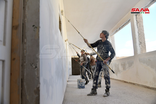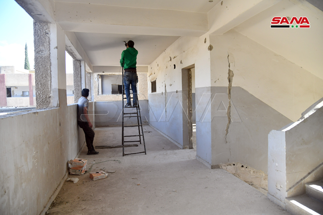 El Departamento de Educación en la provincia de Damasco-campo realiza esfuerzos extraordinarios para la rehabilitación y mantenimiento de las escuelas dañadas por el terrorismo.