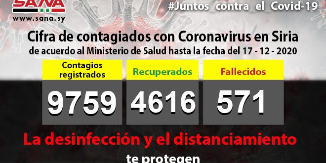 La cifra de infectados por Covid-19 en Siria ascendió a nueve mil 759 tras reportar 156 casos nuevos, informó el Ministerio de Salud en un comunicado.