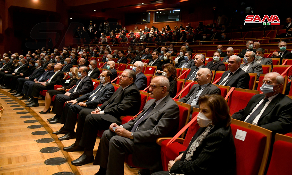 El ministro de Asuntos de la Presidencia de la República, Mansour Azzam, representó al presidente Al-Assad en la ceremonia que se llevó a cabo en la Casa Al-Assad para la Cultura y las Artes en Damasco (ópera) y que contó con presencia oficial, diplomática y pública.