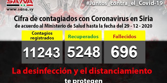 El Ministerio sirio de Salud reportó en las últimas 24 horas 105 nuevos casos por contagio de la Covid-19 y la cifra total llegó a once mil 243.