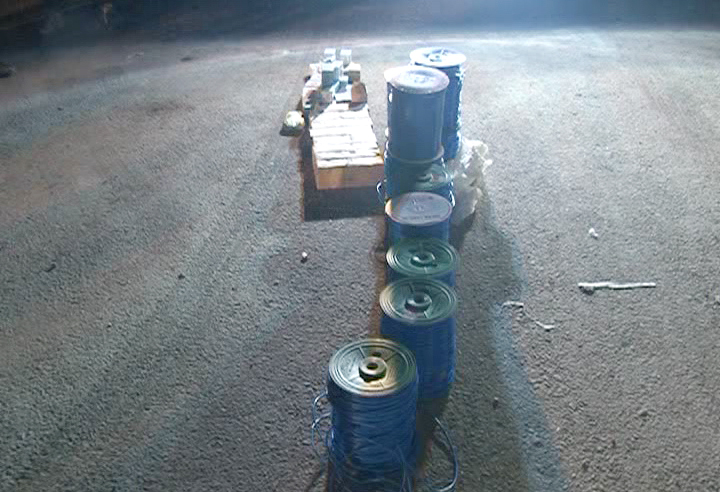Una fuente de la Gobernación de Homs dijo que un puesto de control del ejército inspeccionó a un autobús que se dirigía a Alepo, donde incautó en un búnker secreto, a 11 cajas de cables de mechas, 65 cajas de detonadores y un kilogramo de droga hachís.
