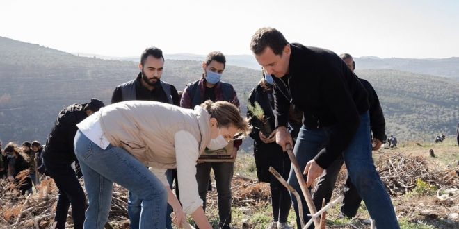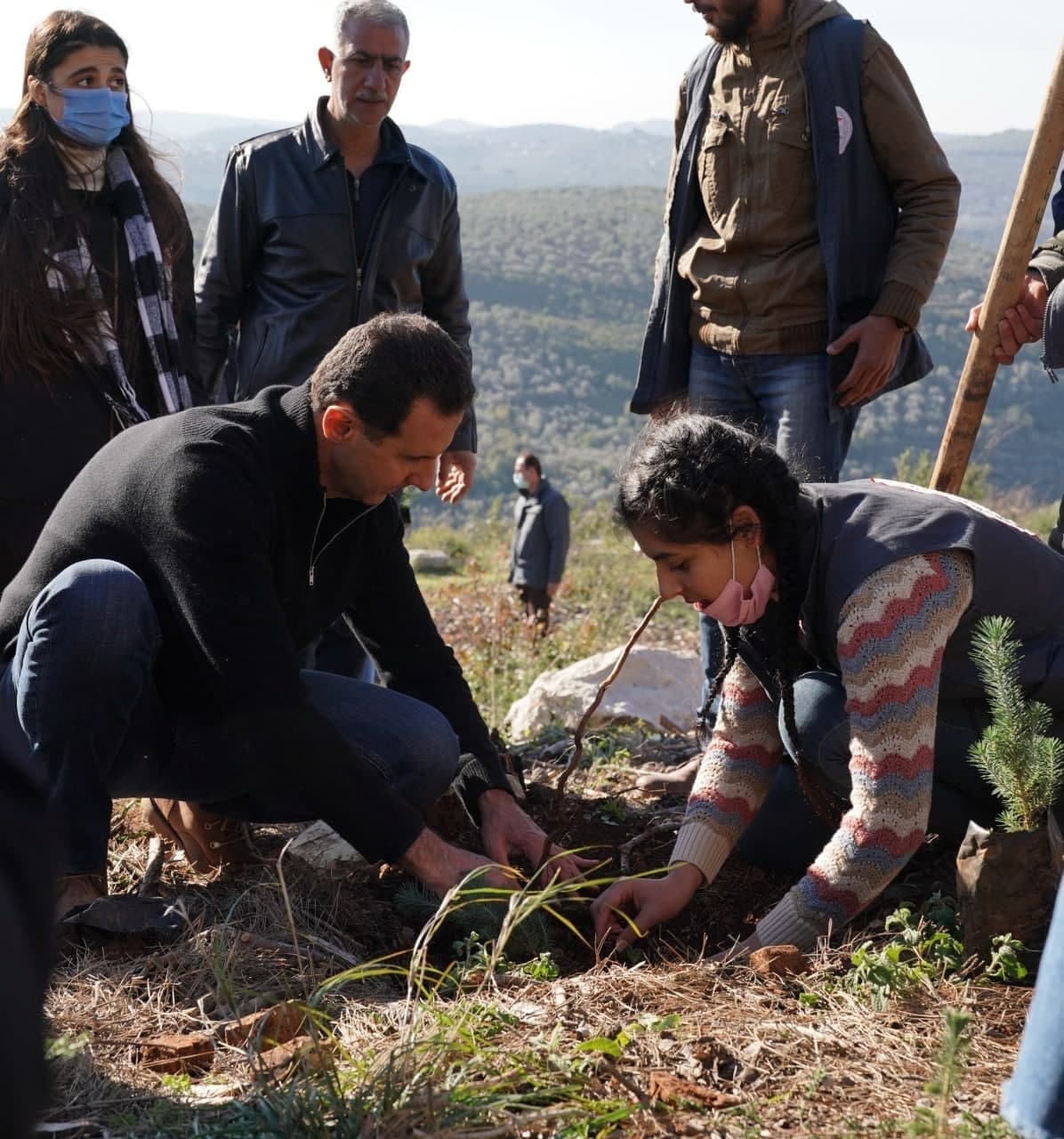 El presidente Bashar Al-Assad y su señora esposa participaron hoy en la campaña de reforestación en provincia costera siria de Tartous.