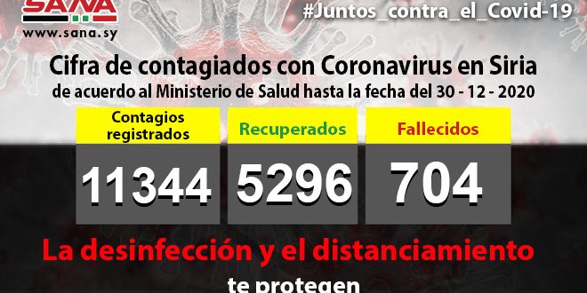 El Ministerio sirio de Salud reportó en las últimas 24 horas, 101 nuevos casos de contagio por la Covid-19 lo que eleva la cifra total a once mil 344.
