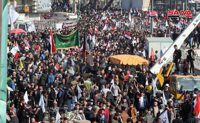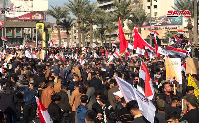La capital iraquí Bagdad, y varias provincias fueron testigos de masivas manifestaciones populares para conmemorar el primer aniversario del martirologio del general Qassem Soleimani, ex-comandante de la Fuerza Al-Quds en la Guardia Revolucionaria Iraní, y Abu Mahdi Muhandes, subjefe de la Fuerza Popular iraquí, en un bombardeo terrorista perpetrado por la aviación estadounidense en las cercanías del Aeropuerto Internacional de Bagdad.