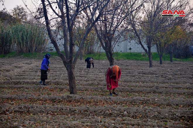 Los agricultores de la localidad de Chifonieh en el municipio de Douma, al este de Damasco, trabajan duro para cultivar y devolver la vida a sus tierras, a pesar de las dificultades y las difíciles circunstancias generadas por la guerra terroristas y el bloqueo.