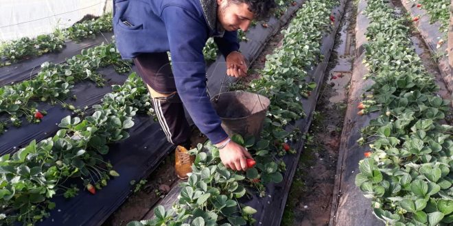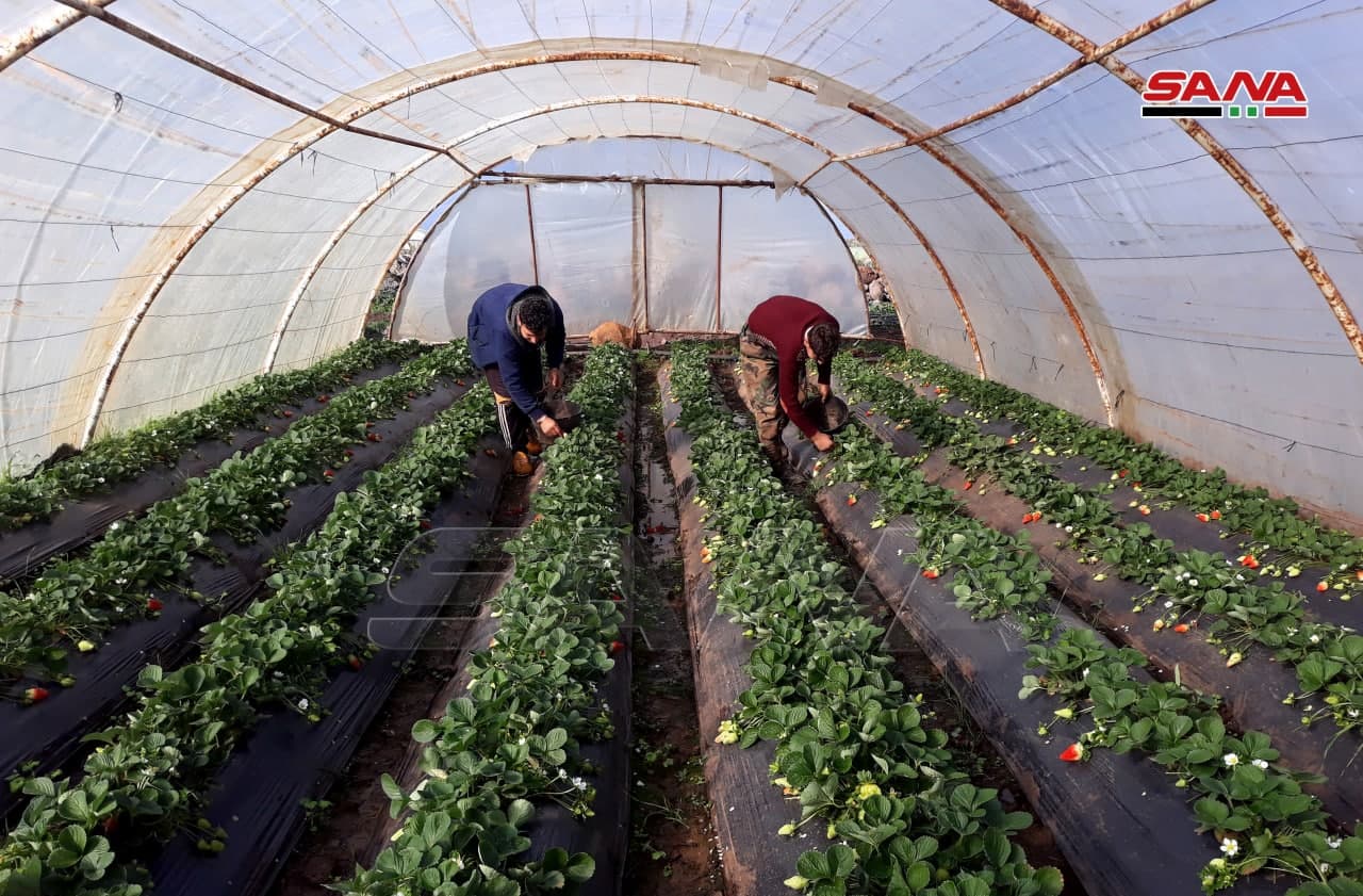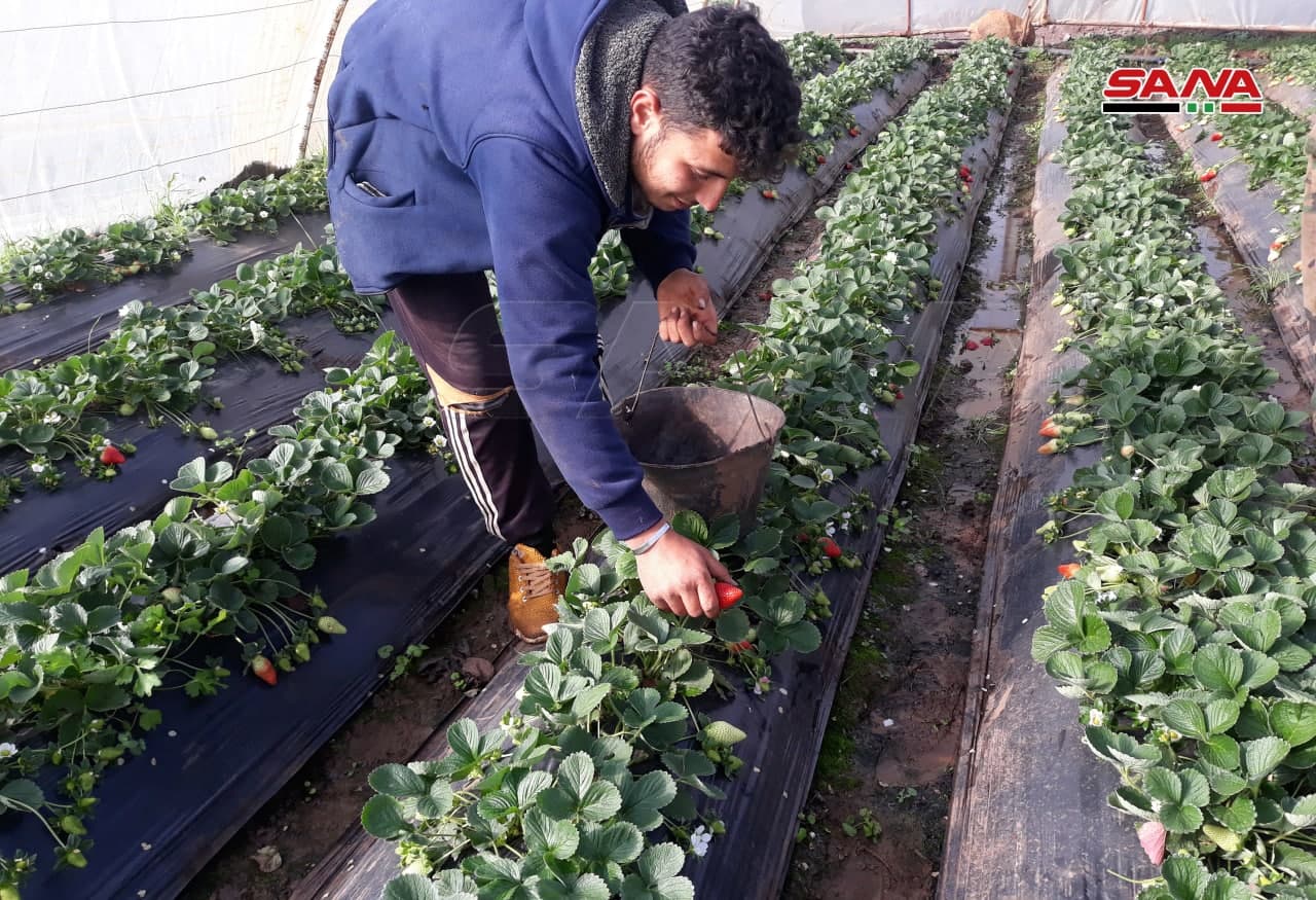 Los agricultores del municipio de Tal Kalakh en el oeste de la provincia central siria de Homs comenzaron la recogida de la fresa.