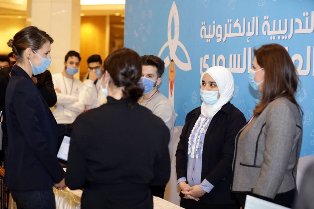 Durante su reunión con los equipos nacionales participantes en la Olimpiada Científica Siria 2021, la Sra. Al Assad enfatizó la importancia de la plataforma electrónica lanzada por la Autoridad de Excelencia y Creatividad para ofrecer sistemas de educación y capacitación a distancia que toman en cuenta el desarrollo y el distanciamiento.