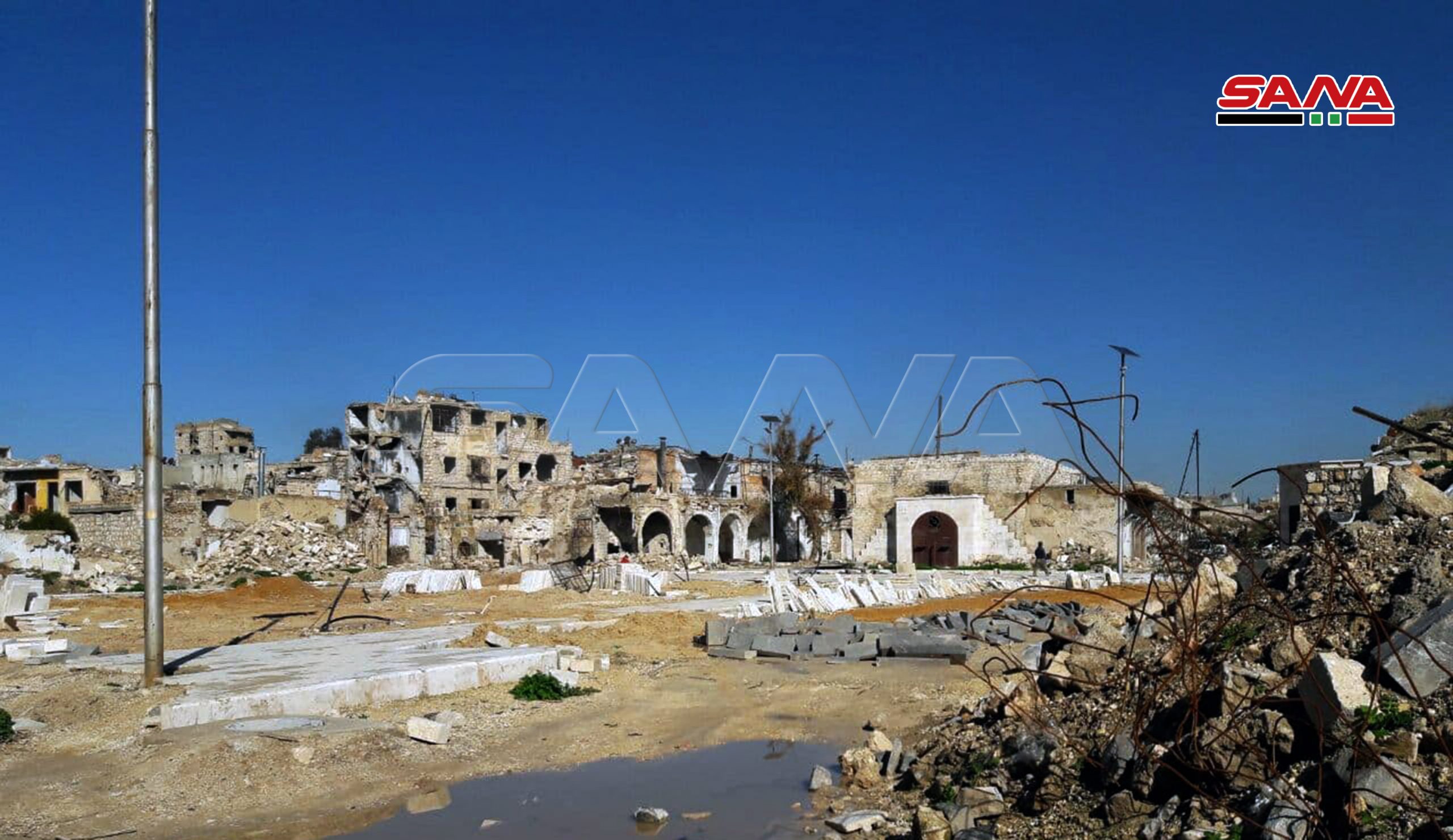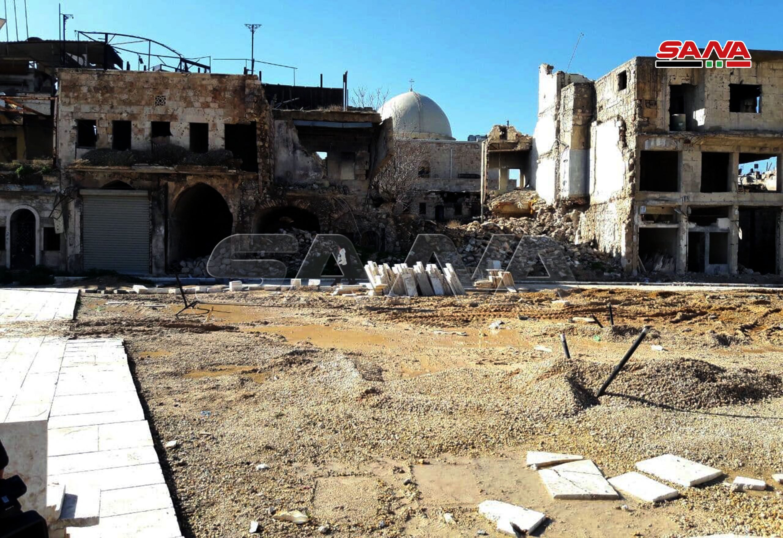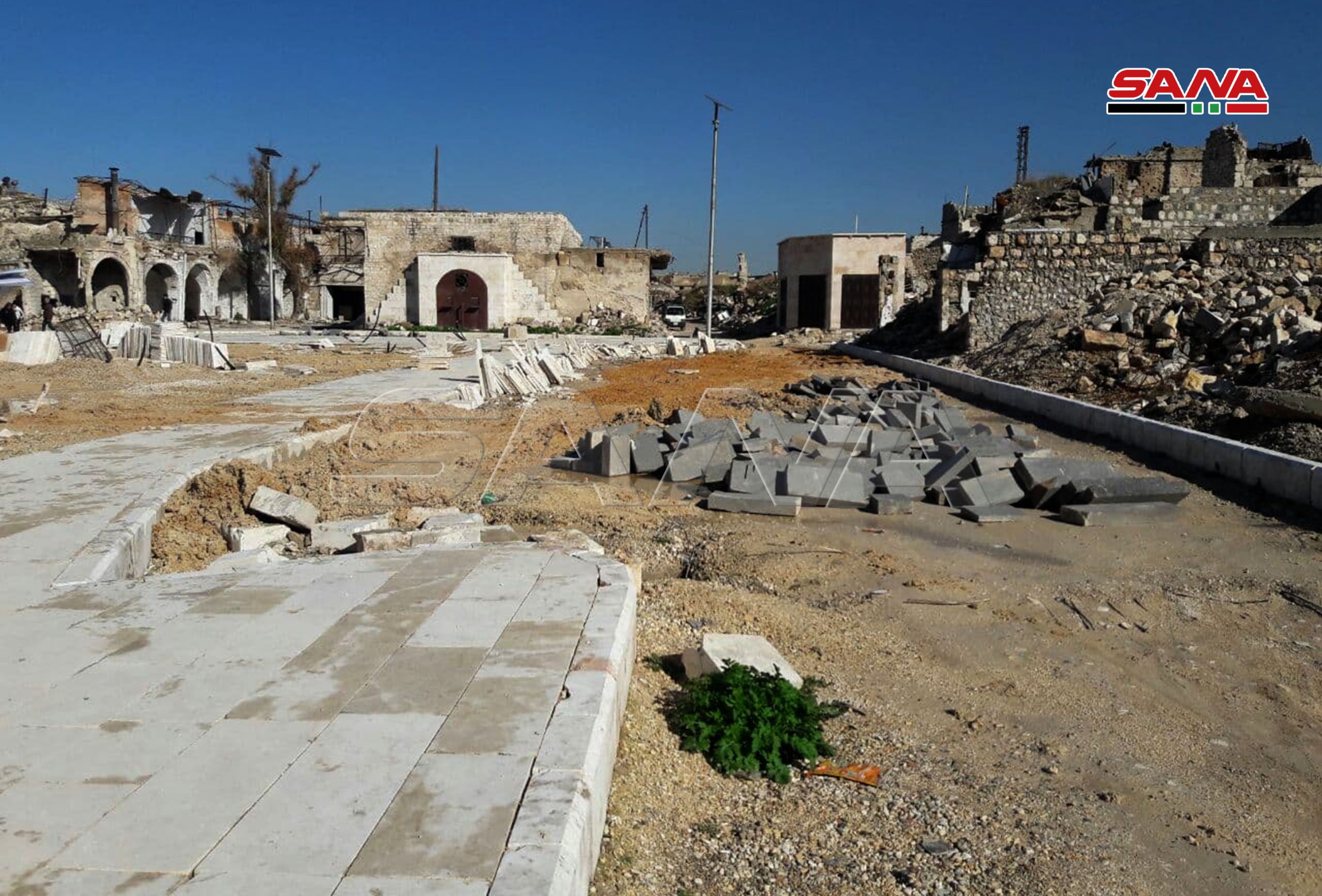 En marco de los proyectos de reconstrucción de la ciudad vieja de Alepo, el Establecimiento Militar de Obras realiza trabajos de rehabilitación de la Plaza Hatab por un coste de 200 millones de libras sirias.