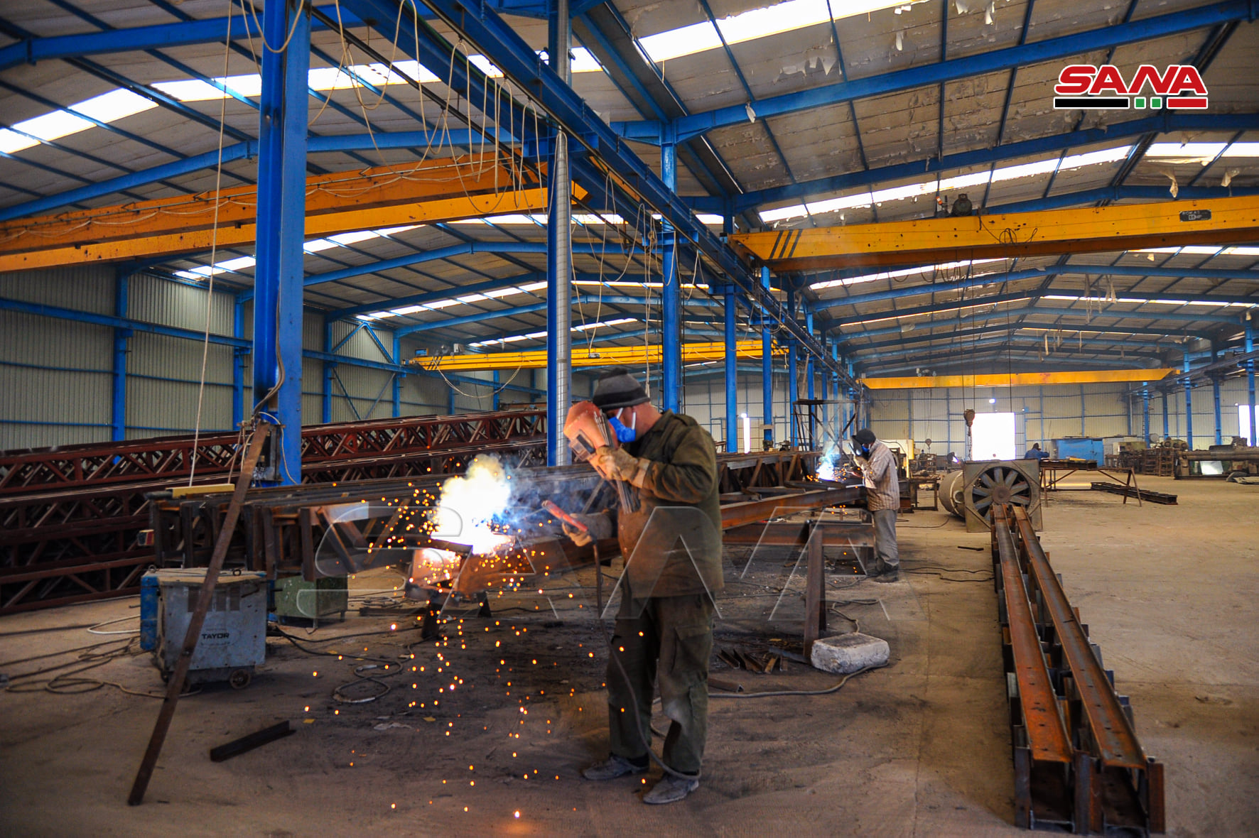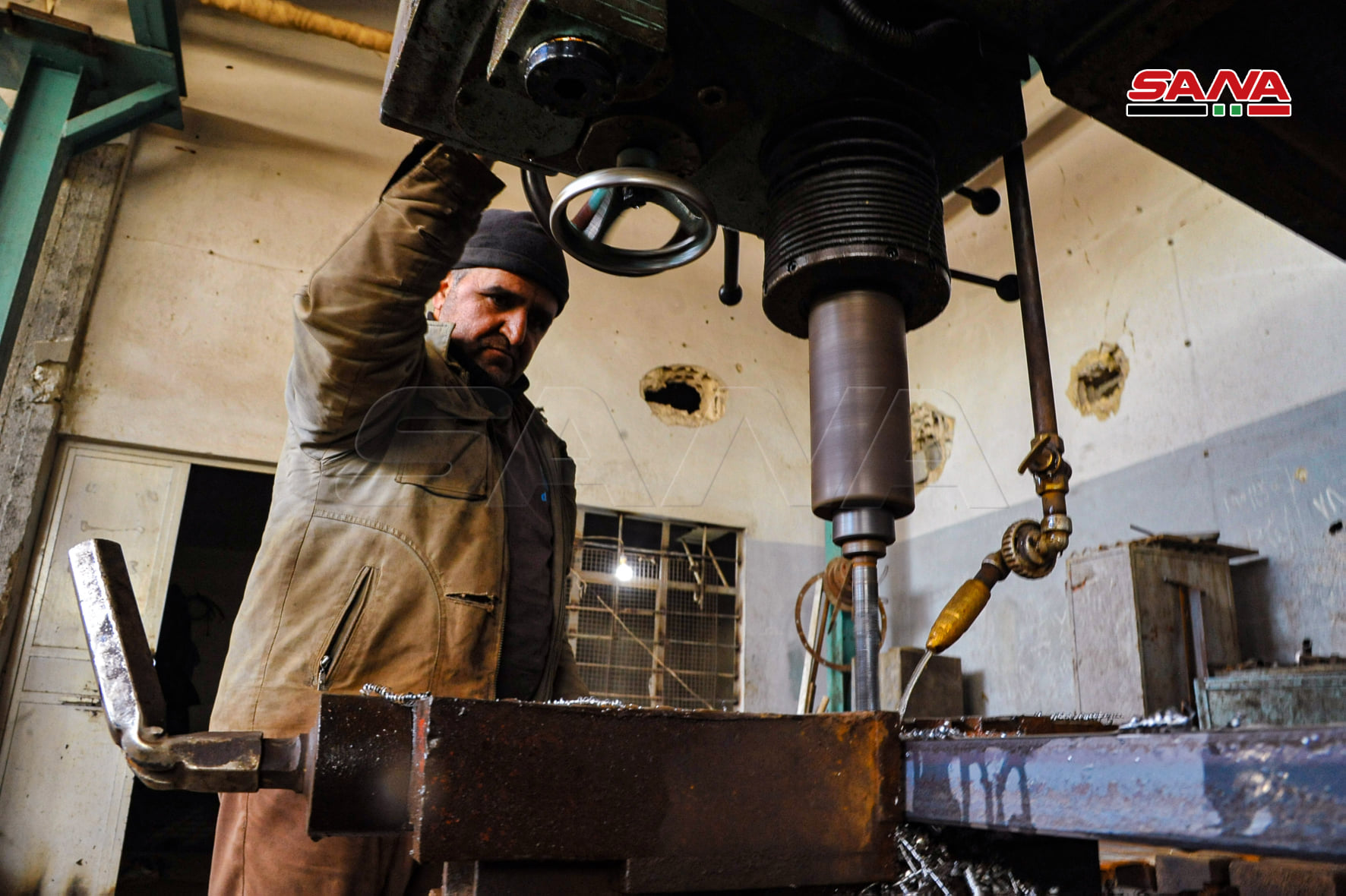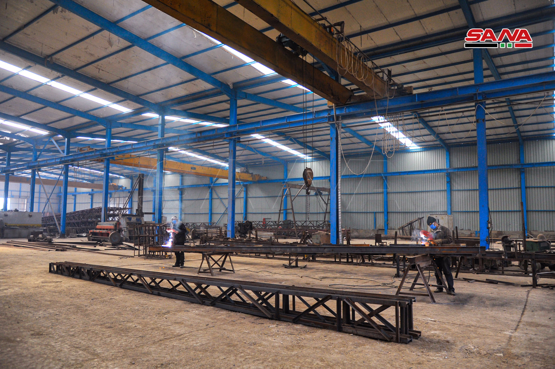 Los trabajadores de la Empresa Estatal de Construcción Metálica e Industrias Mecánicas concluyeron las obras de rehabilitación y restauración de sus instalaciones y maquinarias después de regresar a la sede principal de su empresa en la zona de Adra, a unos 25 km al noreste de Damasco.