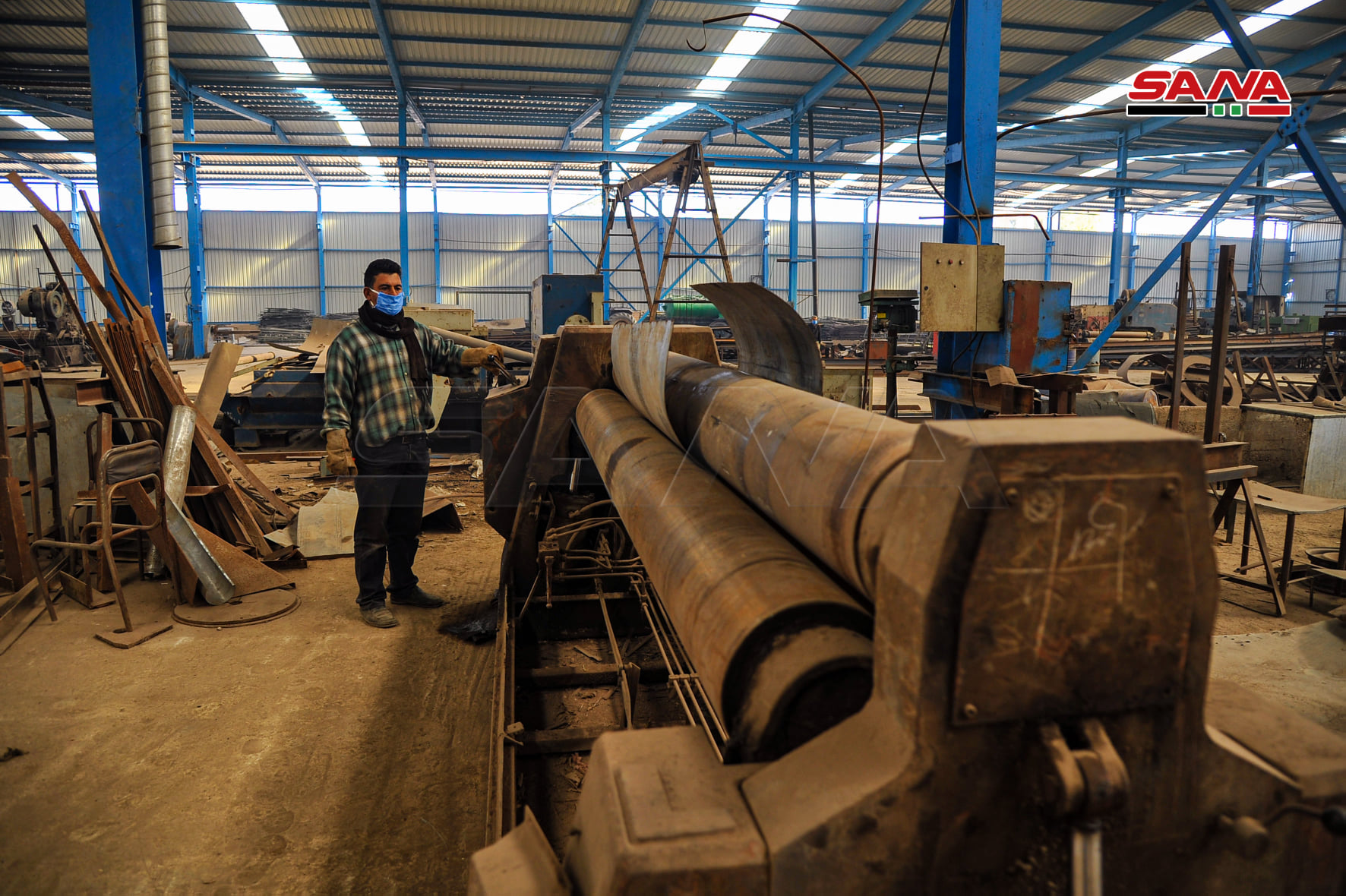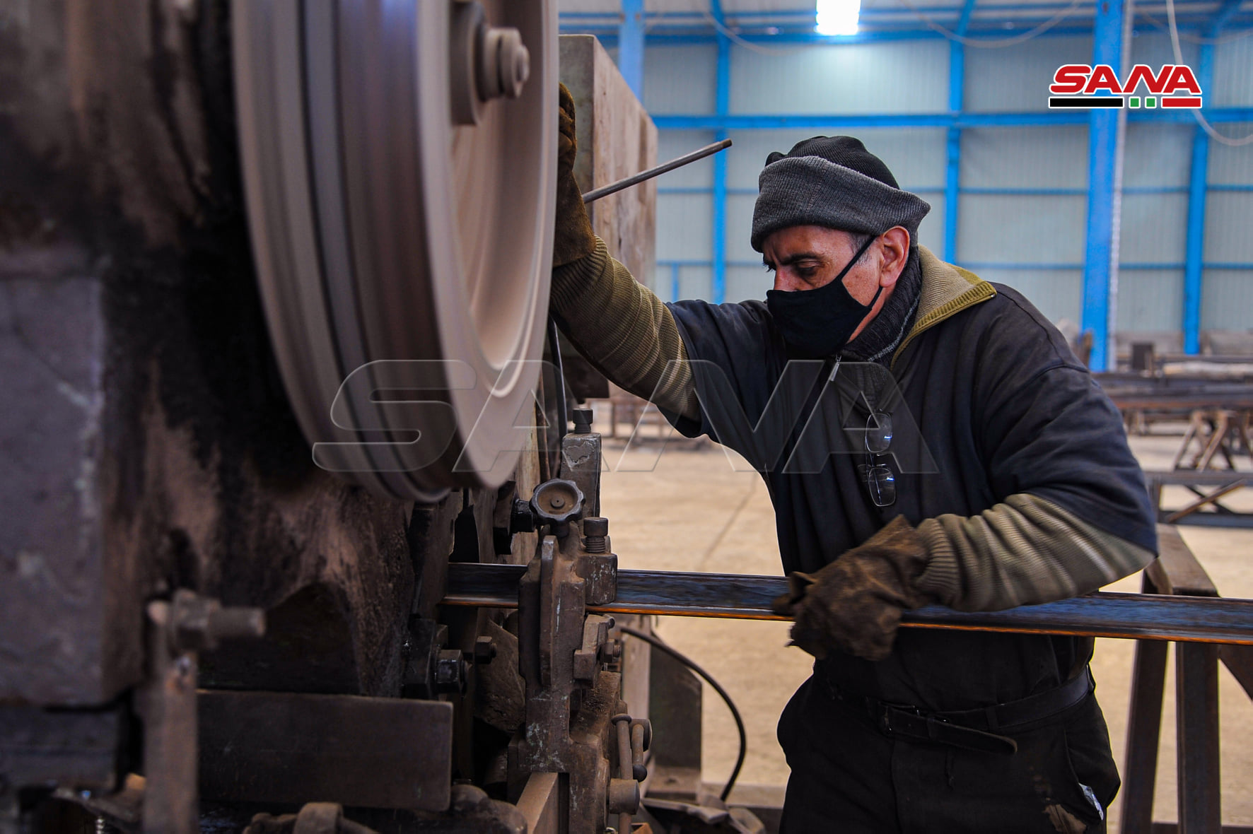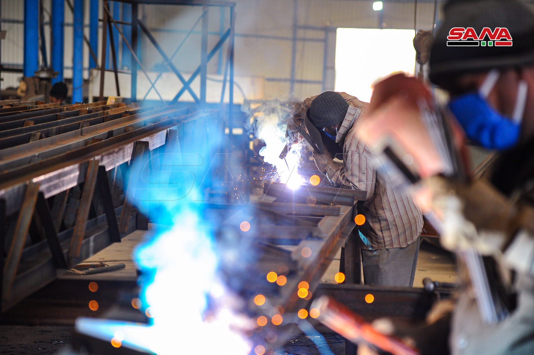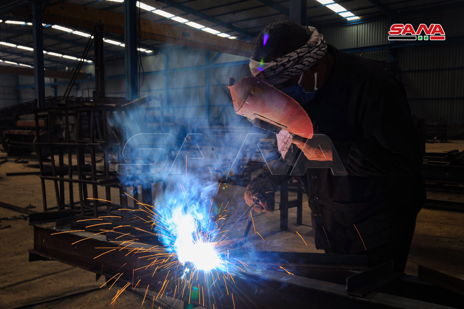 Los trabajadores de la Empresa Estatal de Construcción Metálica e Industrias Mecánicas concluyeron las obras de rehabilitación y restauración de sus instalaciones y maquinarias después de regresar a la sede principal de su empresa en la zona de Adra, a unos 25 km al noreste de Damasco.