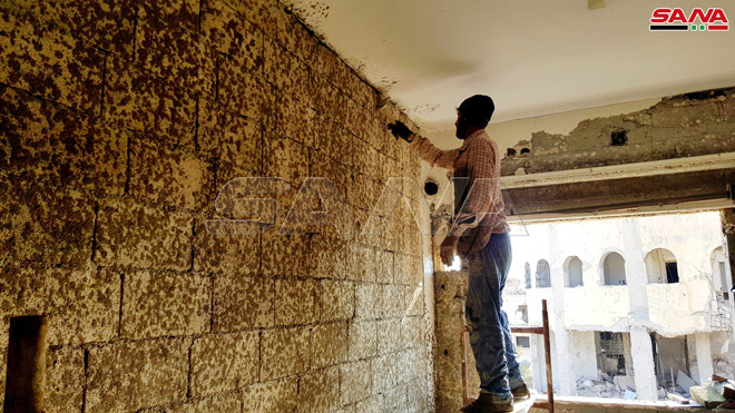 La Empresa Estatal de Electricidad en la provincia de Homs comenzó la reconstrucción del Centro de Electricidad de Palmira que fue dañado por el terrorismo.