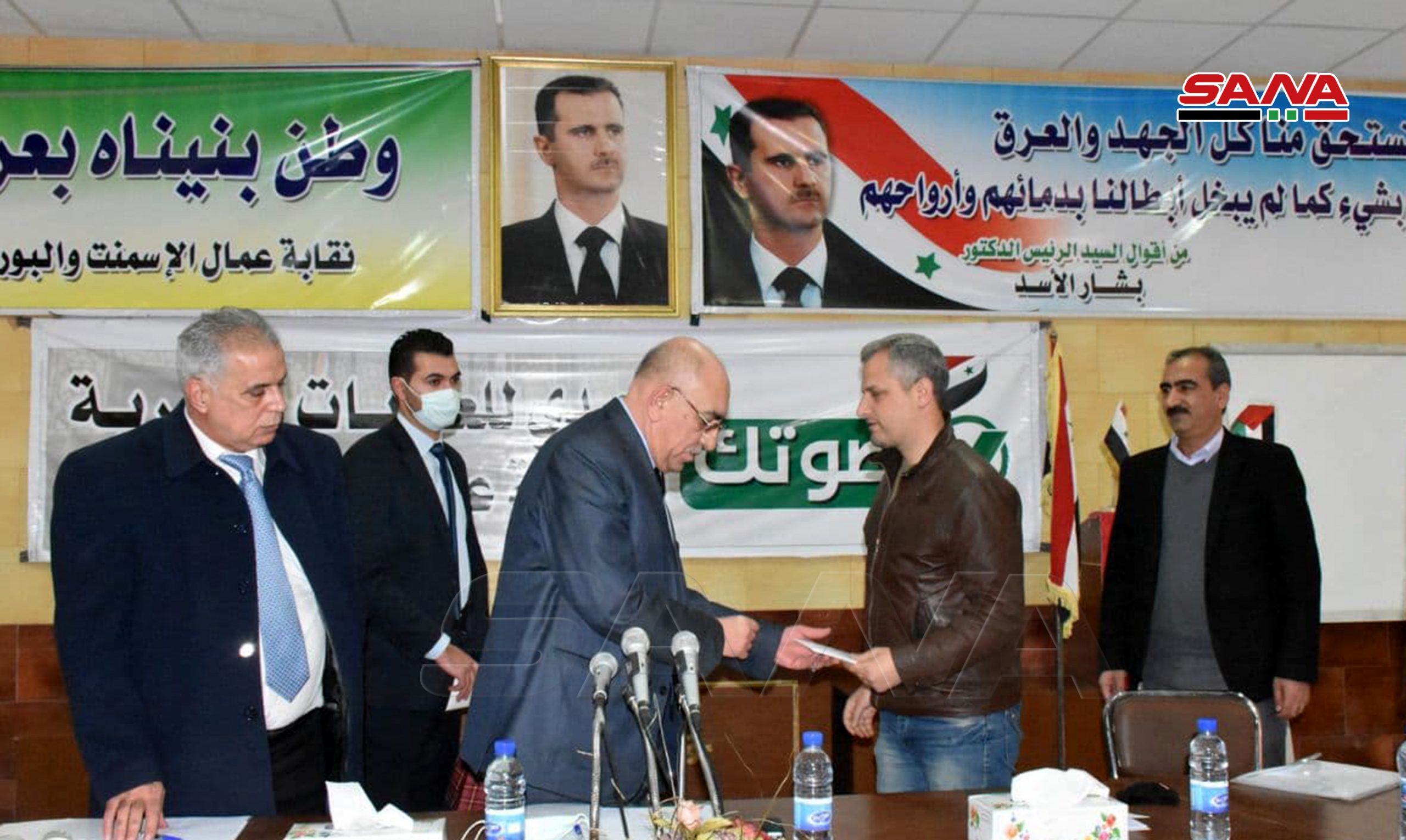 Por directiva del presidente Bashar Al-Assad, el Ministerio de Industria condecoró hoy a un grupo de ingenieros, técnicos y trabajadores de los cuadros de la Fábrica de Cemento de Hama, en el centro del país, quienes realizaron esfuerzos excepcionales para modernizar y desarrollar las líneas de producción.