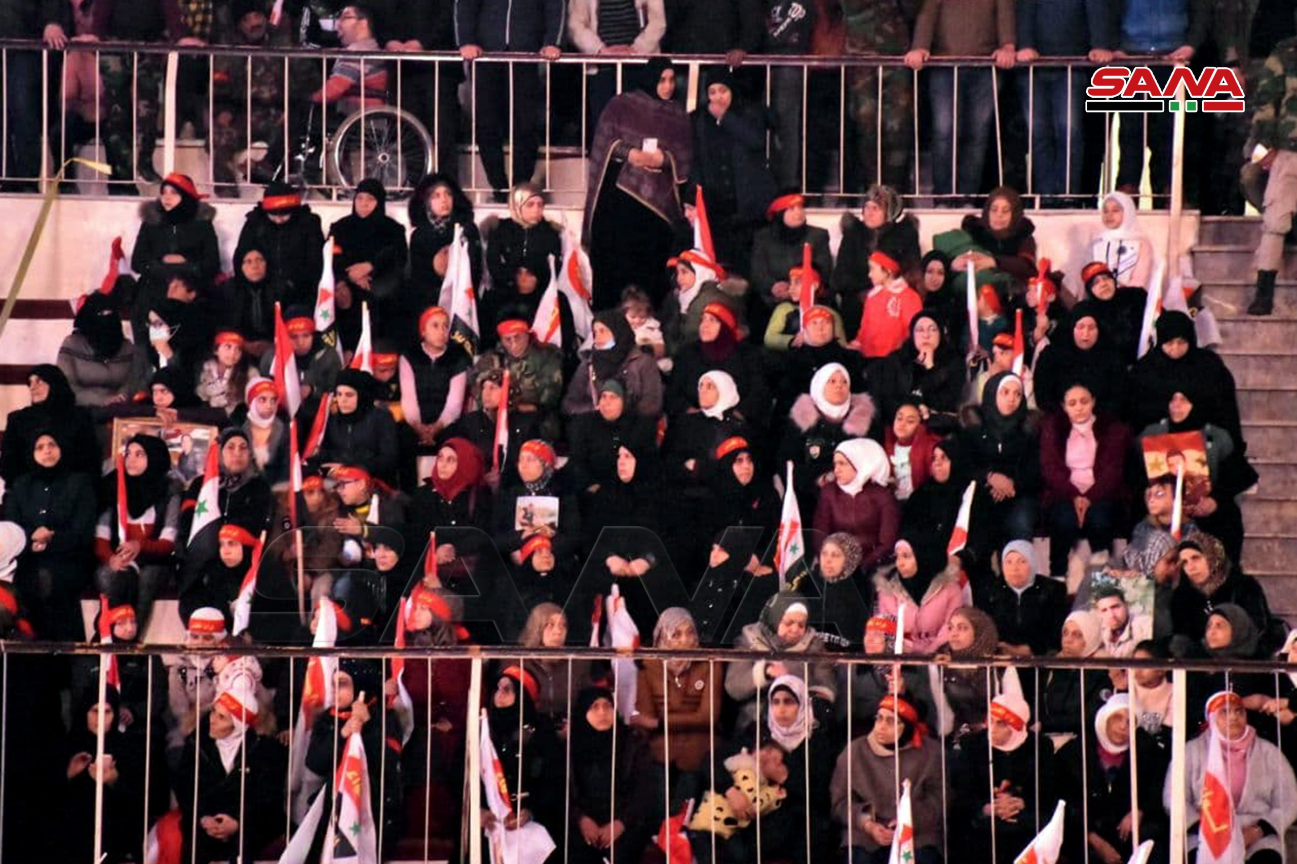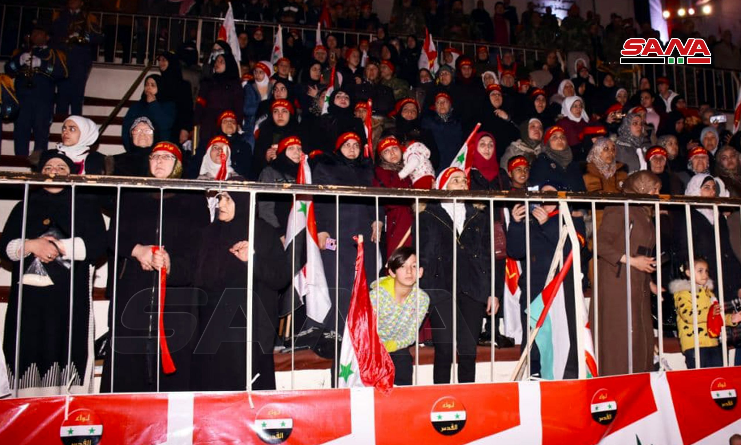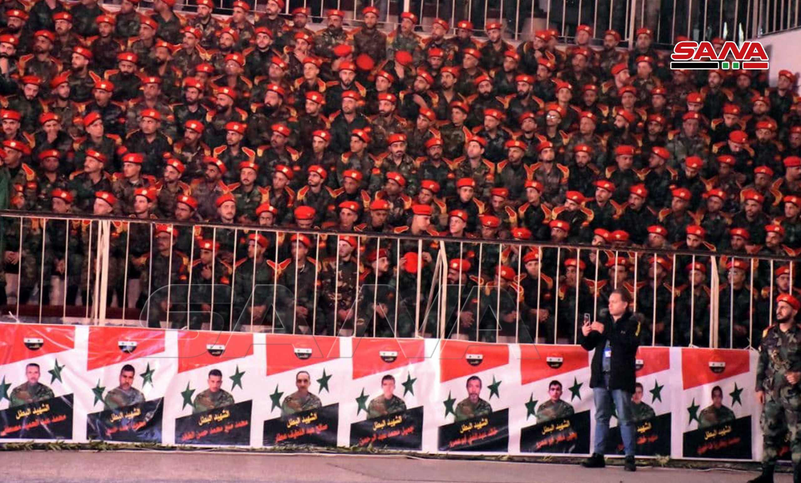 La ceremonia incluyó la proyección de un cortometraje sobre las heroicidades del Ejército Árabe Sirio y la Brigada Al-Quds que lucharon codo con codo en las batallas de liberación de toda la geografía siria.
