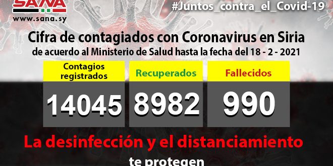 El Ministerio de Salud de Siria anunció 44 nuevos casos con Covid-19 para un total de 15,045.