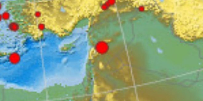 Según informó el Centro Sísmico Nacional, el fenómeno se produjo a la 1:24 hora local y su epicentro fue a 15 km de profundidad y a 64 km al sureste de la ciudad de Homs.