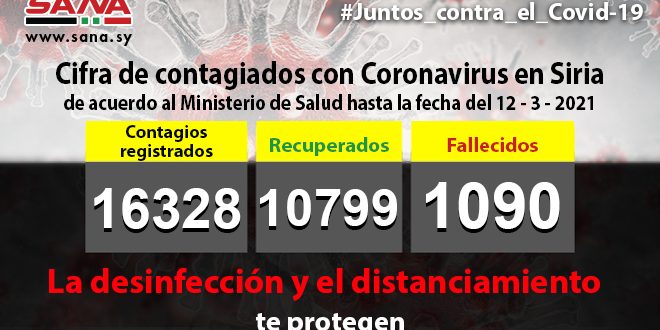 El Ministerio de Salud de Siria informó en una nota de prensa que en la última jornada se confirmaron 71 nuevos casos de contagios con el virus SARS-CoV-2, para un total de 16 mil 328.