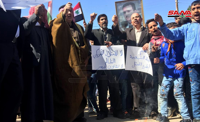 Las áreas ocupadas por las fuerzas de ocupación estadounidenses y turcas y sus milicias terroristas y separatistas presencian decenas de protestas que exigen la expulsión de las fuerzas de ocupación.