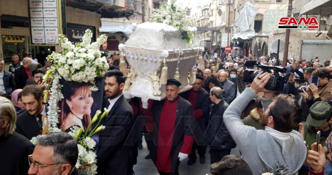 En medio de una presencia oficial y popular, la ciudad de Alepo efectuó hoy el funeral de la afamada cantante siria Mayada Basilis.