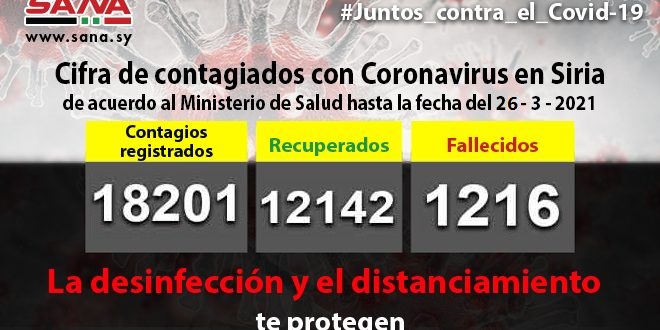 Las autoridades de salud en Siria confirmaron en las últimas 24 horas, 155 nuevos casos de Covid-19.