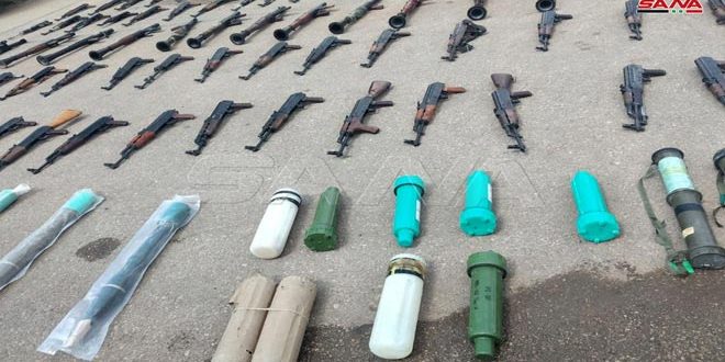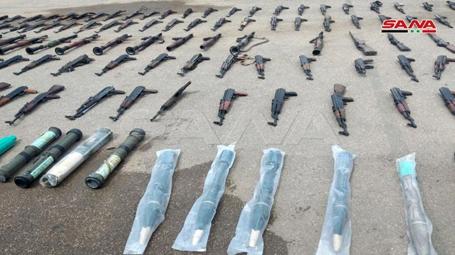 Las autoridades competentes incautaron armas y municiones, remanentes de terroristas, en el campo oeste de la provincia de Deraa.