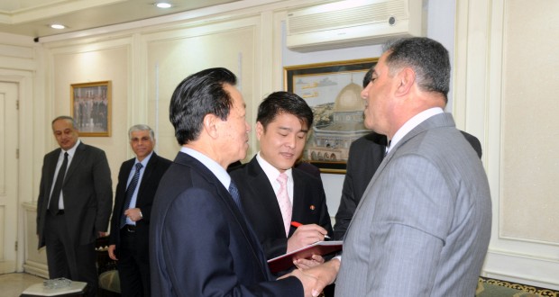 El presidente de la Unión General de los Trabajadores, Yamal Kadiri, examinó este domingo con el embajador de la República Democrática Popular de Corea en Damasco, Zhang Myong Hou las vías de desarrollar las relaciones sindicales entre ambos países.