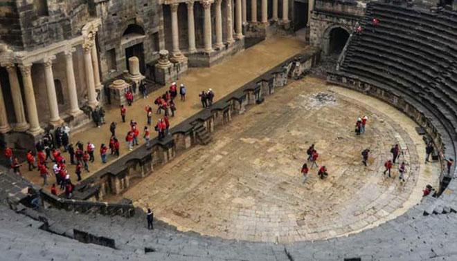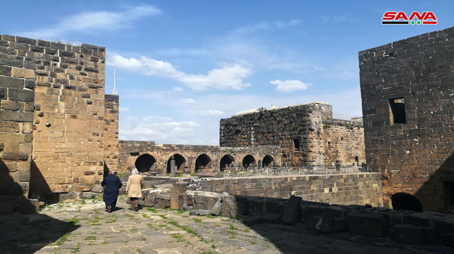 La ciudad de Bosra fue ocupada por las organizaciones terroristas en 2015 y gracias a los esfuerzos del ejército árabe sirio se liberó en 2018 y se izó la bandera nacional en su plaza central.
