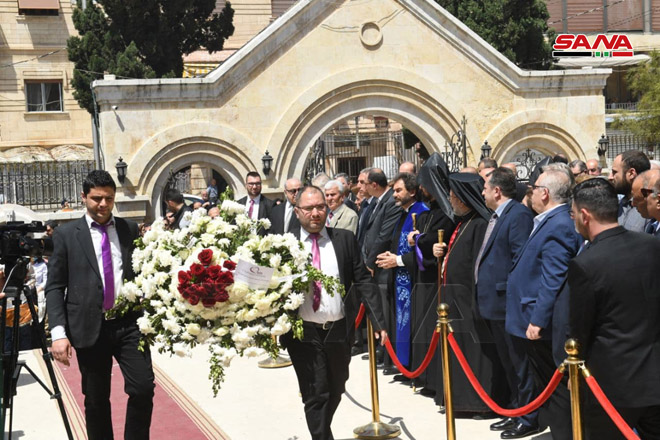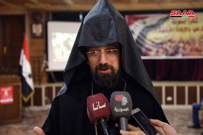 Por su parte, Boutros Marayati, obispo de los católicos armenios en Alepo, elogió la unidad de la sangre sirio-armenia, y agregó: “Somos socios en el martirio por Siria y su heroico ejército.
