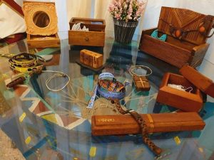 El joven manifestó que entre sus obras se destacan diversas piezas laboradas de madera, además de una serie de productos de Brocado Damasceno elaborado en seda de alta calidad y totalmente natural.