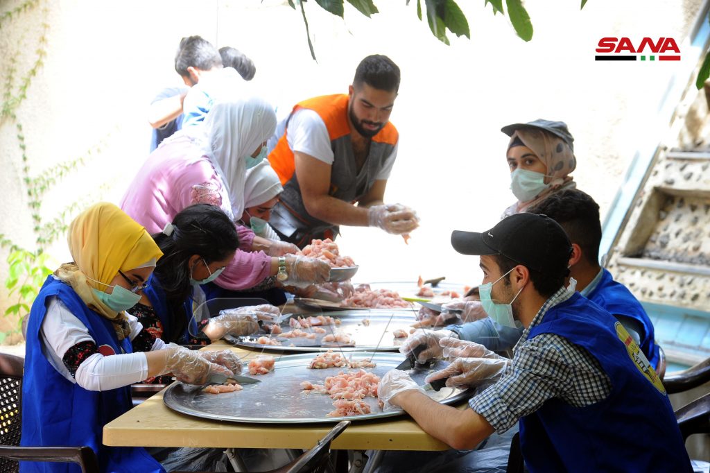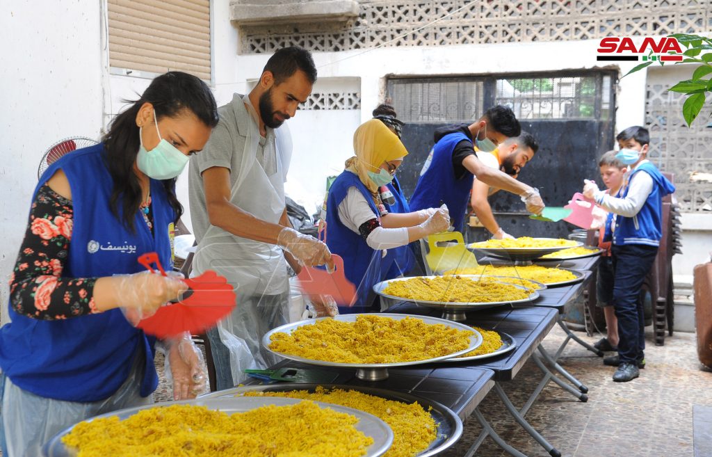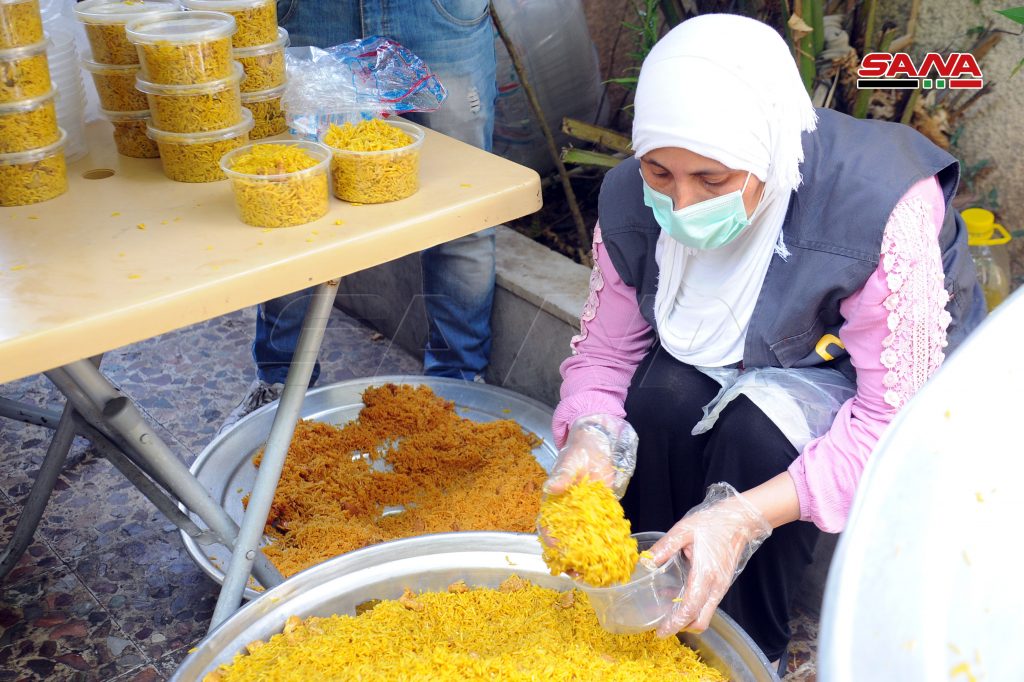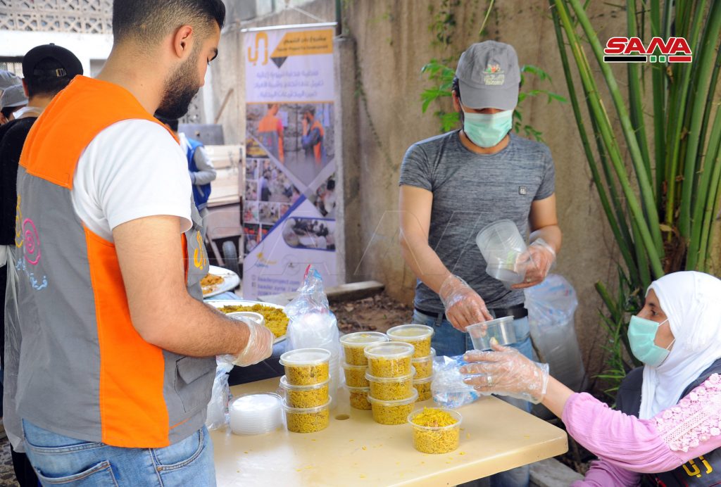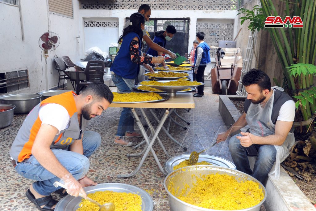 Los jóvenes voluntarios preparan durante el sagrado mes de Ramadán acerca de 5 mil porciones de comida a diario y las reparten a las familias menos afortunadas en Damasco y Damasco-campo, según explicó el director del proyecto, Abdulahafiz al-Qusti.