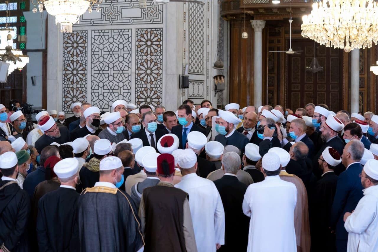 Dirigió el rezo el Sheikh Husam al-Din Farfour, Supervisor General del Complejo Islámico de Al-Fateh en Damasco, quien resaltó los sublimes significados de Eid al-Fitr como la solidaridad, compasión, cohesión y tolerancia.