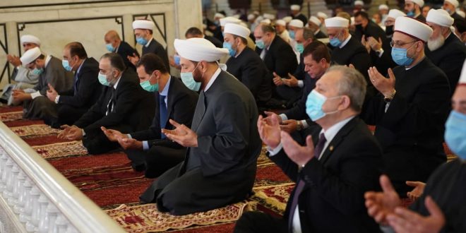 El presidente Bashar Al-Assad, efectuó el rezo de Eid Al-Fitr (fiesta del fin de Ramadán, mes musulmán del ayuno) en la Gran Mezquita Omeya en la capital Damasco.