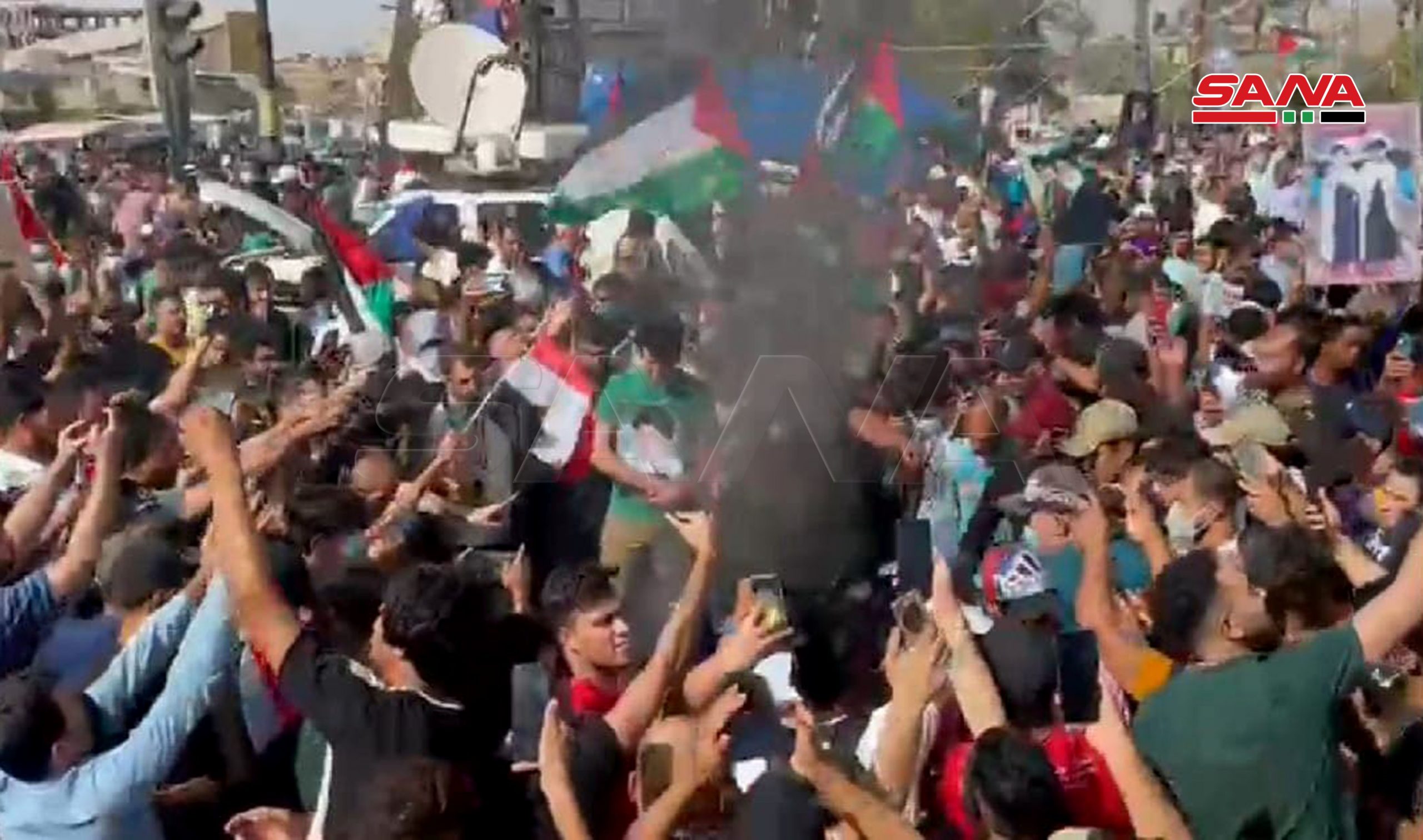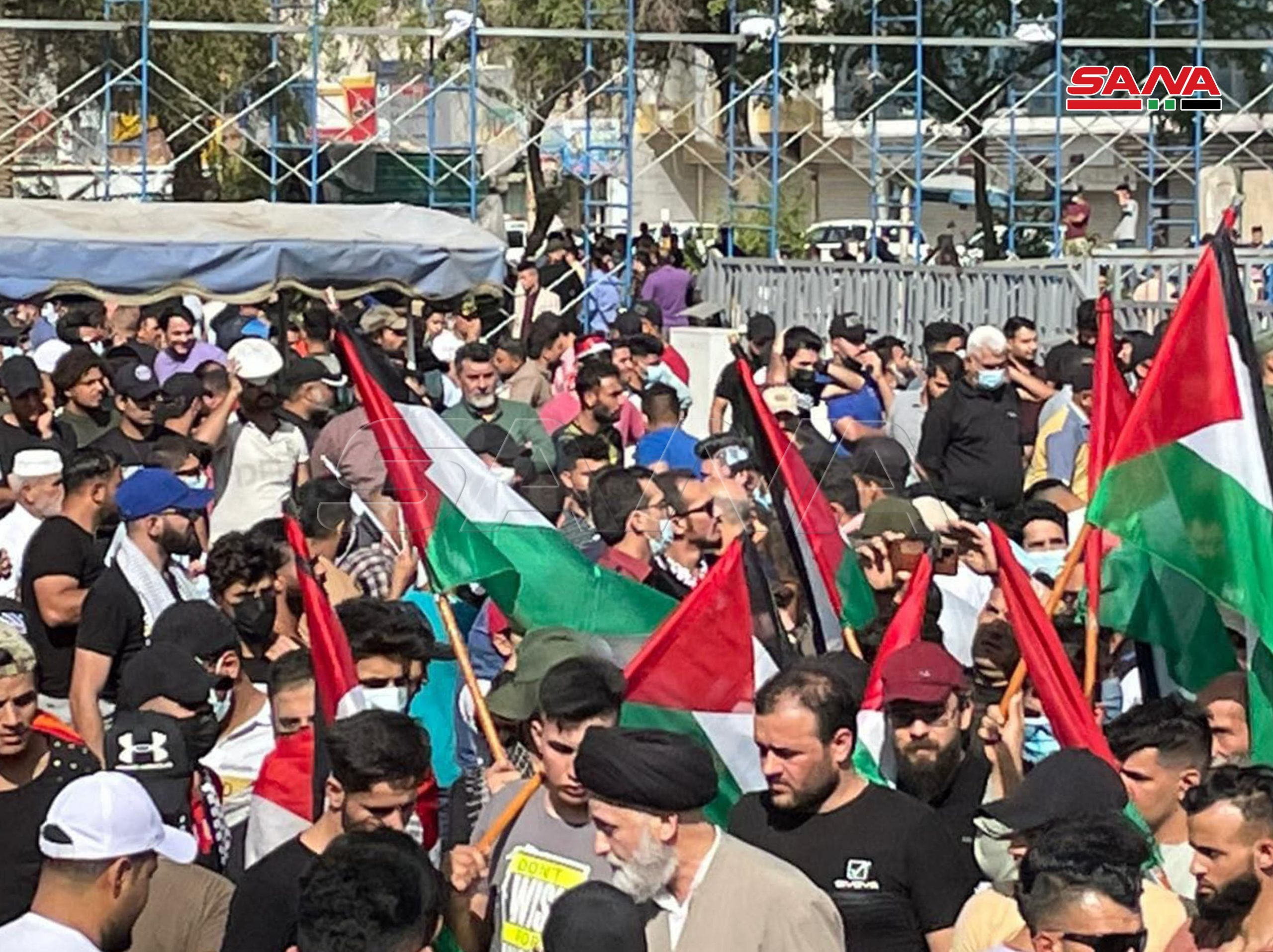 Miles de iraquíes participaron en una manifestación masiva en la capital, Bagdad, donde izaron banderas palestinas, denunciaron los crímenes de la ocupación israelí contra los palestinos en la Franja de Gaza y Jerusalén ocupada, y pidieron a la comunidad internacional que ponga fin a los ataques israelíes.
