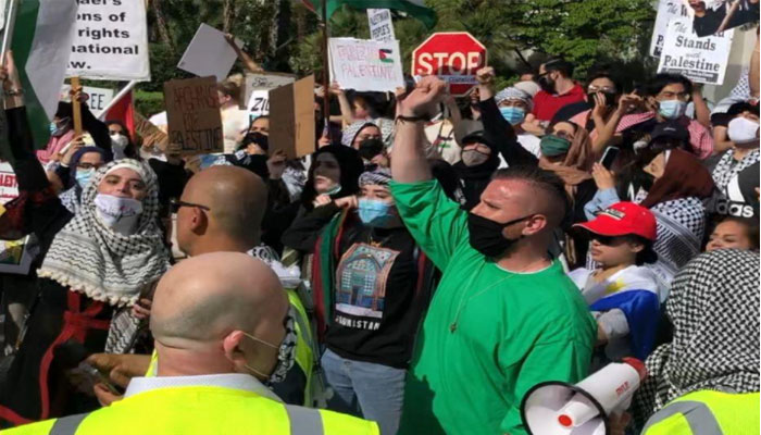 En Estados Unidos, miles de palestinos, árabes y partidarios de la causa palestina salieron en manifestaciones masivas en protesta de los continuos ataques israelíes contra los palestinos, y denunciaron el silencio internacional sobre sus crímenes.
