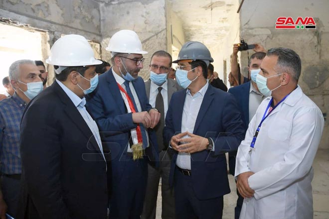 El ministro de Salud, Hassan Al-Ghoubash, inaugura hoy la reapertura del Hospital Oftalmólogo en la ciudad de Alepo.