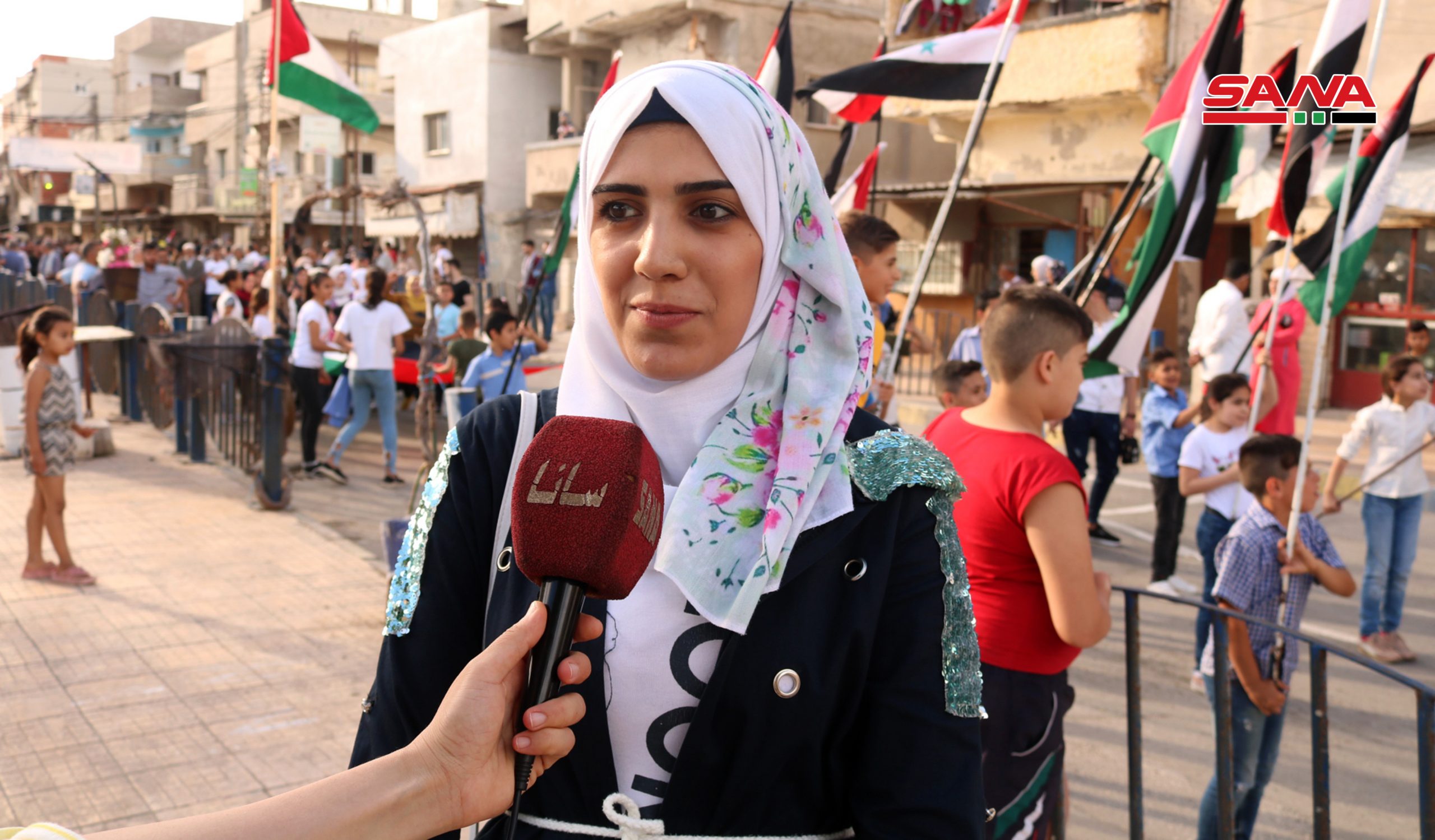 Los participantes en la marcha aseveraron que el pueblo sirio siempre respaldará el pueblo palestino y la causa palestina.