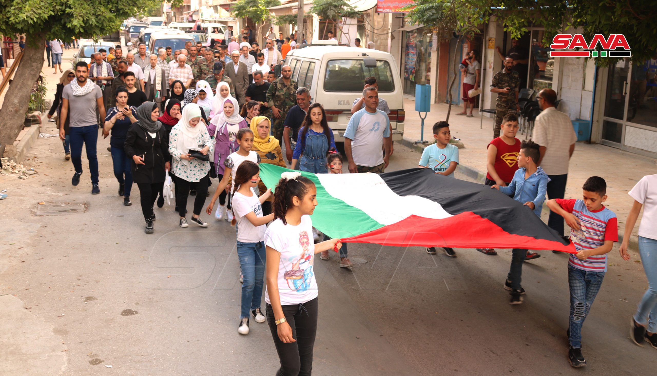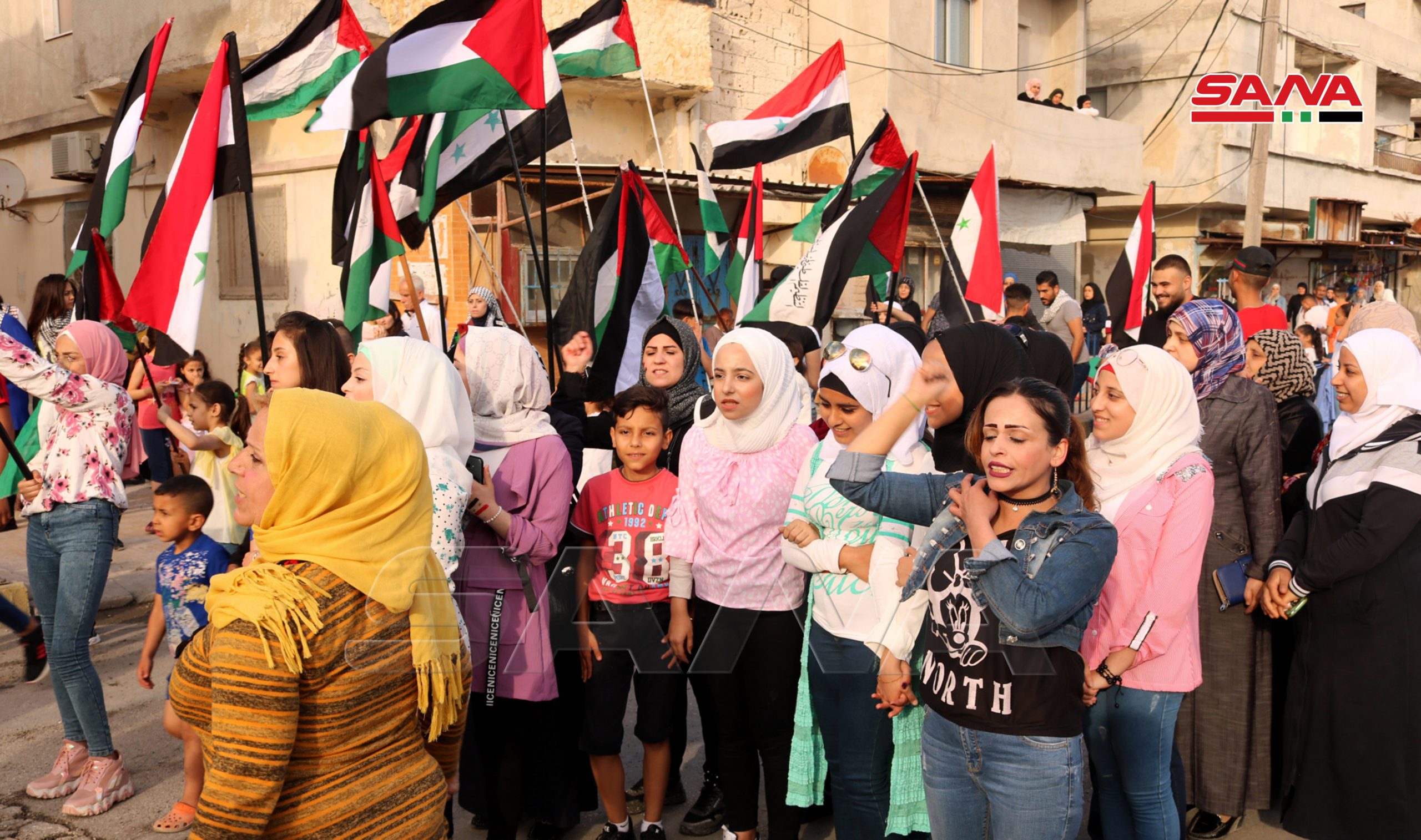Las facciones nacionales palestinas organizaron en el campo de Al-Aydeen en la provincia costera de Latakia, una marcha multitudinaria para mostrar apoyo y solidaridad con el pueblo palestino que enfrenta violenta escalada de agresiones israelíes.