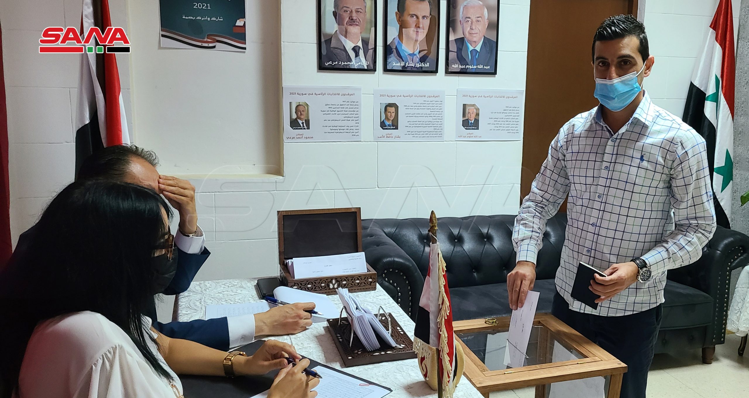 Por su parte, el ministro plenipotenciario y jefa de la misión siria en Brasilia, Khouzami Mustafa, anunció que la embajada siria abrió sus puertas para recibir a los ciudadanos sirios emigrantes en Brasil para que voten en las elecciones presidenciales en presencia de los miembros del comité electoral formado en la embajada.