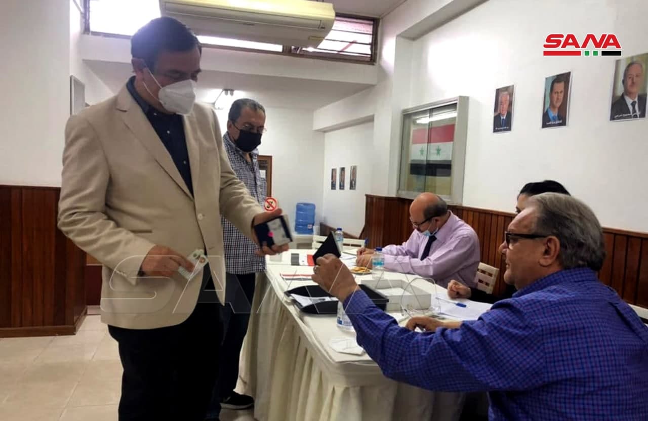 El embajador sirio en Venezuela, Khalil Bitar, declaró a SANA que la embajada recibió desde las 07:00 am (hora local) a los miembros de la comunidad siria que vienen de localidades distantes para votar en las elecciones presidenciales, lo cual, según el embajador, refleja la alta responsabilidad y gran pertenencia nacional que tienen.
