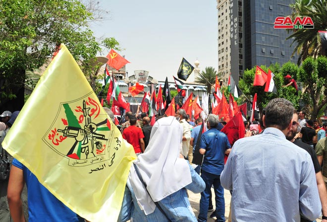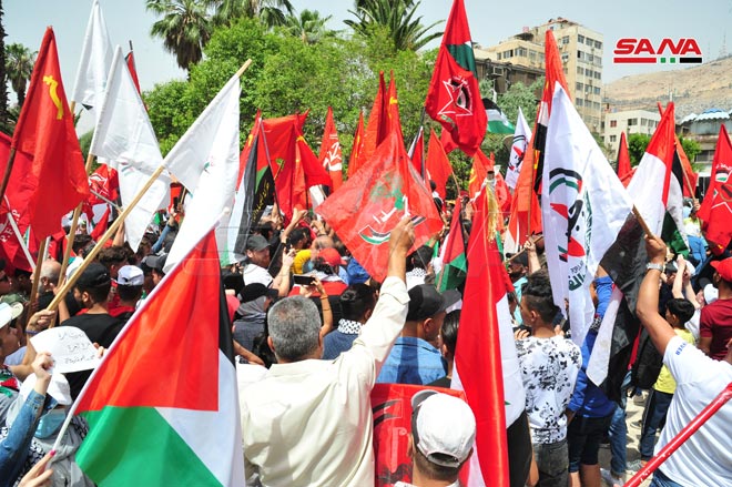 La ciudad de Damasco fue testigo este viernes de un acto de solidaridad con el pueblo palestino, durante el evento, los participantes afirmaron su pleno y permanente apoyo a la causa palestina como el tema central para la nación árabe hasta la liberación de la tierra y el establecimiento de un estado palestino independiente y con Jerusalén como su capital eterna.