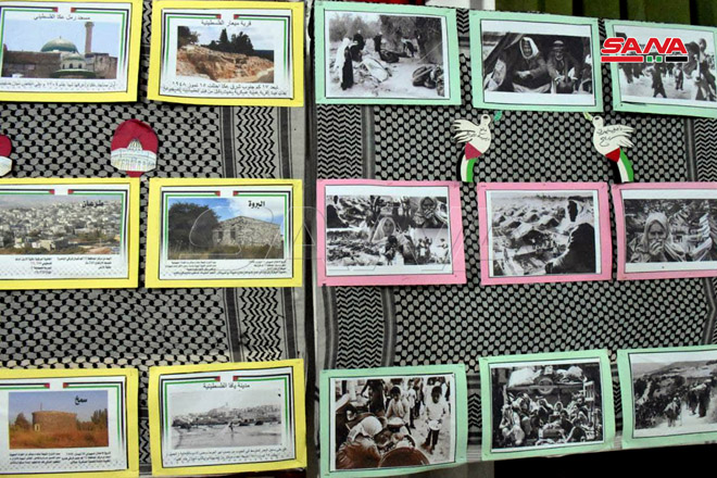 El Secretario del Movimiento Palestino “Fateh” en Hama, Fadel Abu Dahis, comunicó a SANA que la exposición trata de la lucha palestina contra la ocupación israelí en varias etapas históricas, e incluye documentos que confirman el derecho de los palestinos a poseer tierras e inmuebles en la Palestina ocupada.